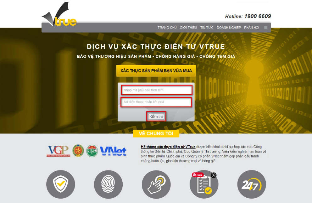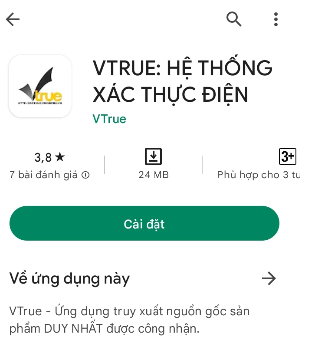 Quý khách dùng điện thoại có hệ điều hành iOS/ Android và kết nối internet tải App Vtrue để quét mã số phủ có in trên tem.