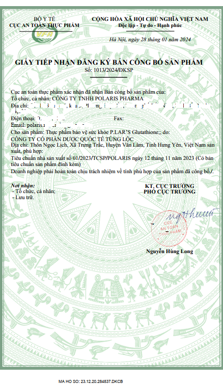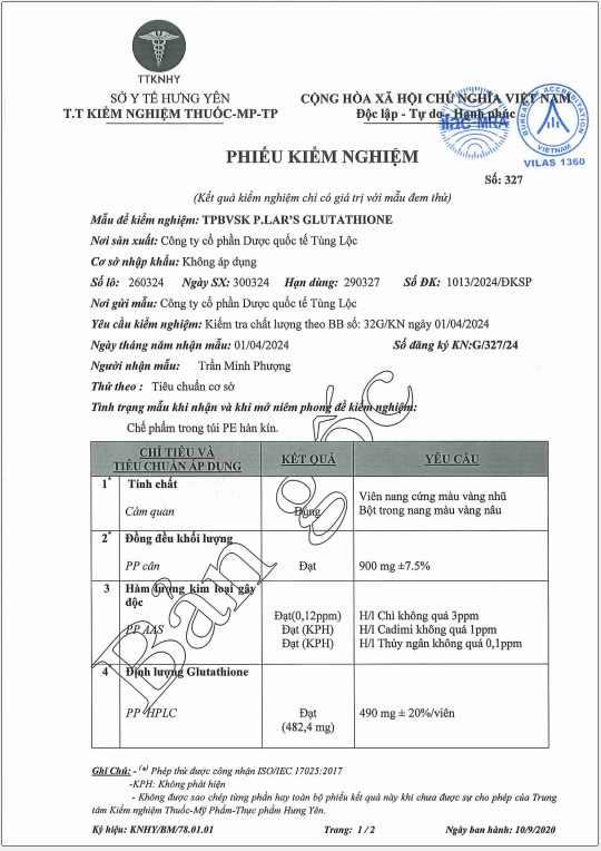 1. Thành phần Viên uống trắng da Plar's Glutathione
