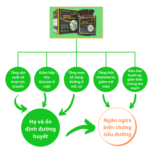 Sử dụng Cao Dây Thìa Canh Vinacao thường xuyên sẽ giúp kiểm soát lượng đường trong máu ở mức ổn định và an toàn, nhờ đó, các chức năng chuyển hóa của cơ thể được thực hiện nhịp nhàng, tránh dẫn các biến chứng nguy hiểm.