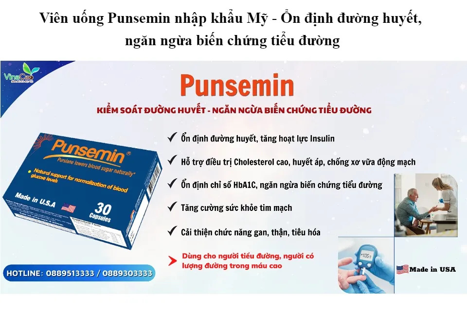 Punsemin là sản phẩm được nghiên cứu bởi các chuyên gia dược lý hàng đầu tại Mỹ mang tính đột phá giúp ổn định đường huyết, hỗ trợ điều trị bệnh đái tháo đường kháng insulin, được nhập khẩu chính hãng về Việt Nam và được nhiều chuyên gia y tế trong nước khuyên dùng.